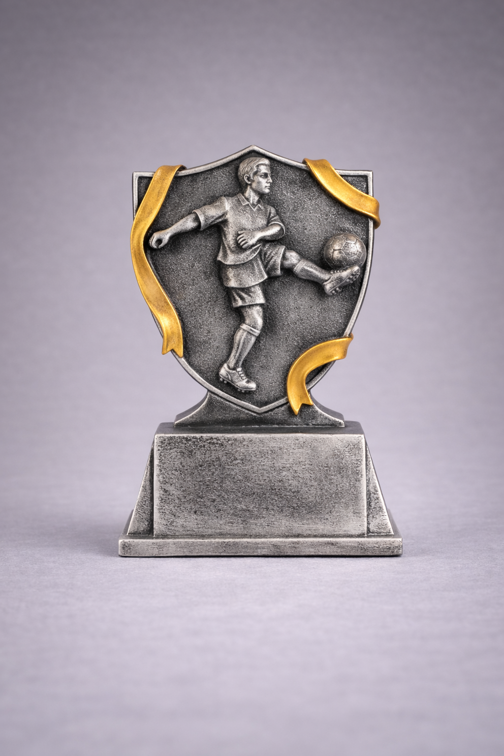 Denne moderne spillerpokalen i resin er utviklet for klubber, turneringer og arrangører som ønsker en tydelig og profesjonell premie med fotball i sentrum. Pokalen har et kraftfullt uttrykk med detaljert spiller og en solid sokkel som gir god tyngde og kvalitet.